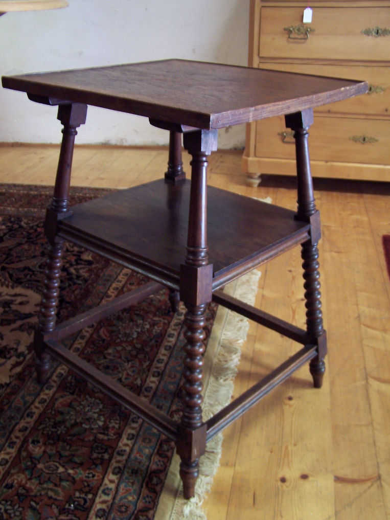 Ein seltener Grammophontisch aus Eichenholz um 1900.