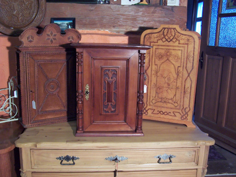 Verschiede Wand- oder Apothekerschränkchen aus verschiedenen Epochen.